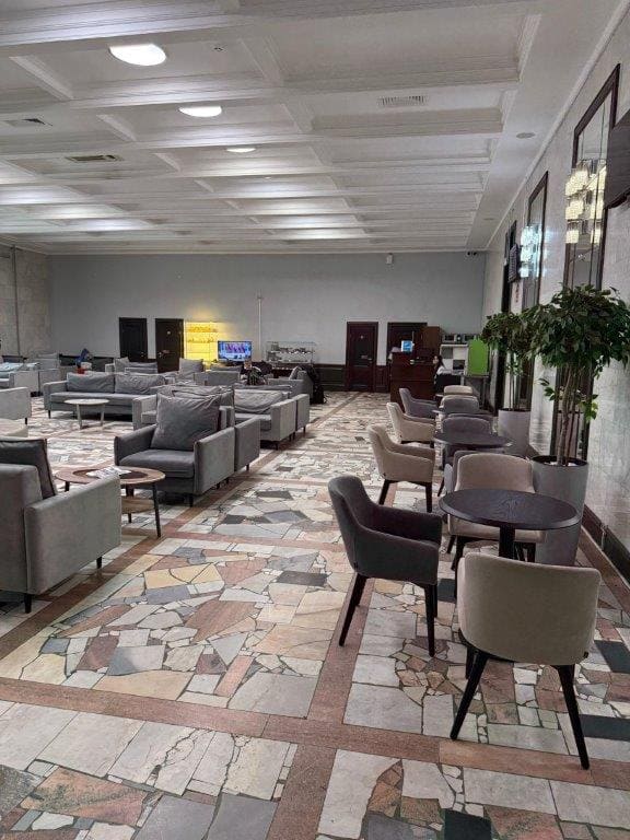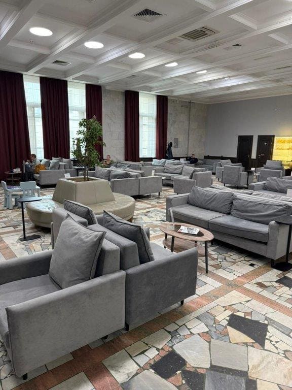 Площадь бизнес-зала составляет 183 квадратных метра с высотой потолков 5 метров, вместимость – 35 человек.